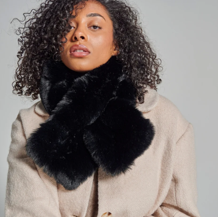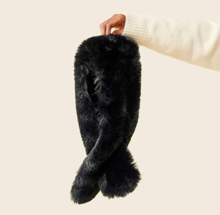 La sciarpa in pelliccia nera è l'accessorio cocooning per eccellenza: calore, stile e praticità, tutto in uno.