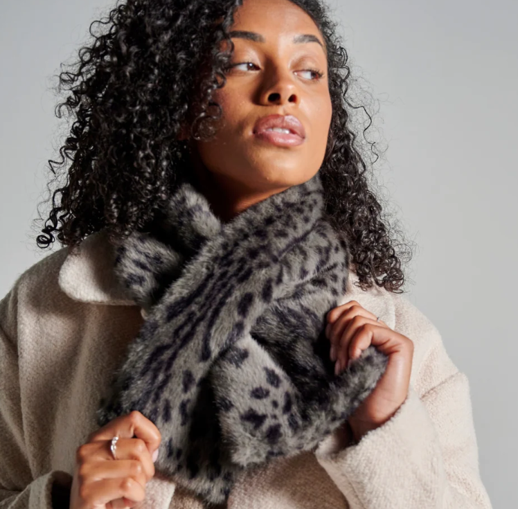 La sciarpa in pelliccia sintetica leopardata grigia non è solo un accessorio di tendenza: è una piccola rivoluzione per coccolarti durante l'inverno.