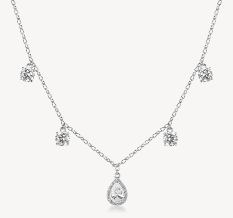 Collana girocollo in argento rodiato 925‰ con pendenti con round e pear cubic zirconia.