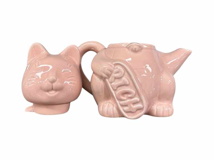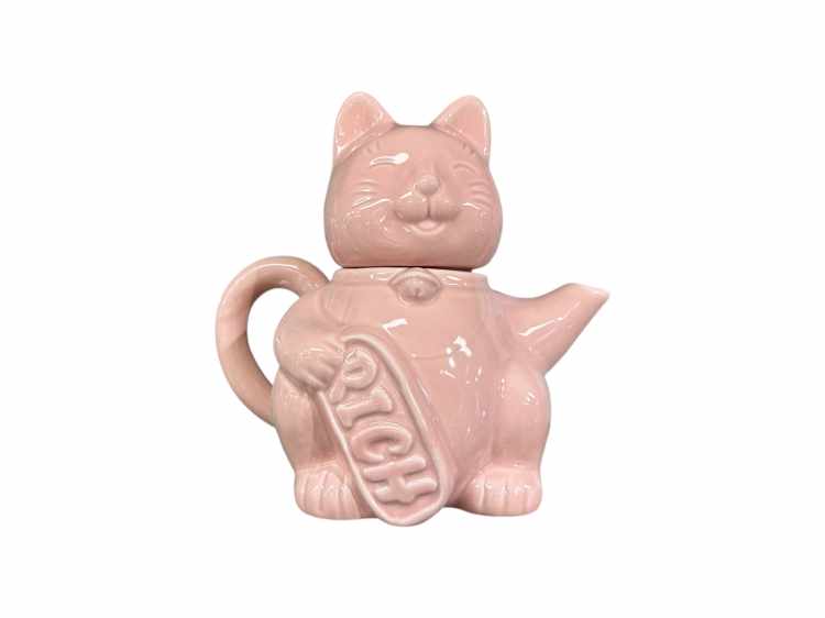 Teiera in ceramica a forma di gatto portafortuna, unisce design giocoso e raffinatezza per momenti di the pieni di amore e fortuna.