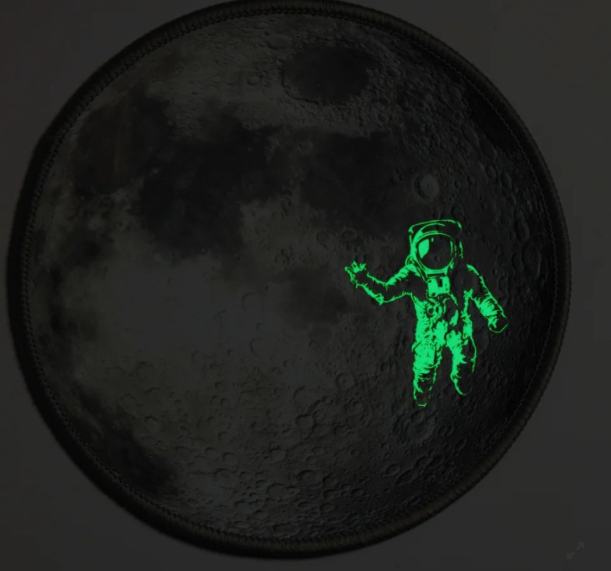 Questo tappetino per mouse raffigura un astronauta fosforescente che fluttua nel vuoto, proprio come voi, cercando di rispettare le scadenze in un universo che se ne frega.