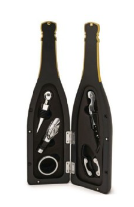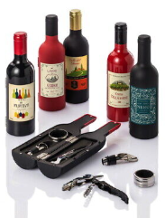 Bottiglia Set 3 accessori per vino, in una originale scatola a forma di bottiglia con le etichette di vini italiani. Le bottiglie verranno spedite secondo assortimento. Un originale regalo per tutti gli amanti del vino…