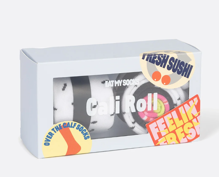Amiamo tutti il sushi, è un dato di fatto, ma ognuno ha la sua variante preferita. Se la tua scelta è l'uramaki californiano, ti presentiamo i calzini Cali Roll, il modo perfetto per dimostrare la tua passione per il sushi che preferisci.