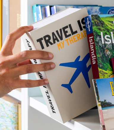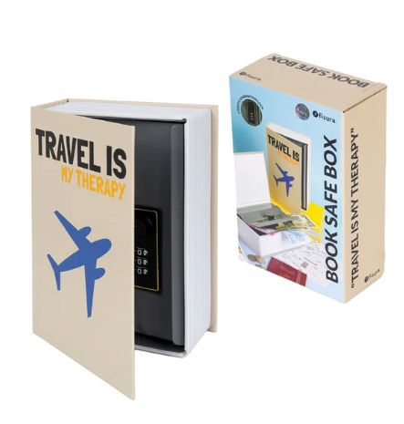Proteggi i tuoi tesori più preziosi con stile con questa cassaforte segreta a forma di libro . Con la scritta "travel is my therapy" ✈️ , sembra un semplice diario di viaggio, ma in realtà è il nascondiglio perfetto per i tuoi oggetti più importanti.