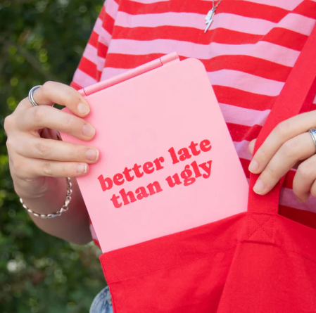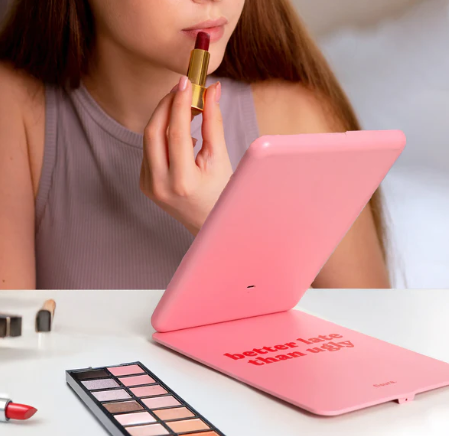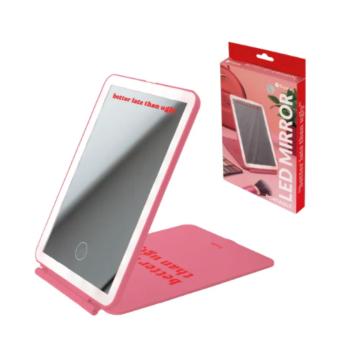 Con il messaggio "meglio tardi che brutta/o", questa lampada sarà la tua compagna inseparabile. È anche compatta e pieghevole, ideale da portare nello zaino, in una borsa grande o ovunque ti serva per i tuoi viaggi. Il pannello touch della luce LED ti permette di regolare l'intensità e scegliere tra 3 opzioni di illuminazione: calda, neutra o naturale. Grazie all'angolazione regolabile, troverai sempre la prospettiva perfetta per ritoccare il trucco, i capelli o la cura della pelle, ovunque. È il regalo perfetto per quell'amica che la vuole sempre a portata di mano, per qualcuno che ha un mobiletto improvvisato in cui riporla, o anche come pensierino divertente in un barattolo glitterato.