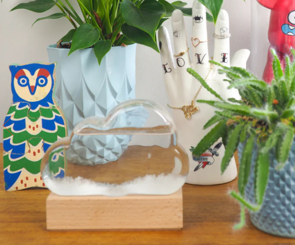 Questa stazione meteorologica non è un semplice termometro o barometro. È un vero e proprio strumento che prevede l’umore atmosferico attraverso l’uso di un liquido speciale all’interno della nuvola. La Storm Cloud non si limita a prevedere il tempo, ma interpreta i cambiamenti atmosferici in modo affascinante e, a tratti, anche un po' teatrale.