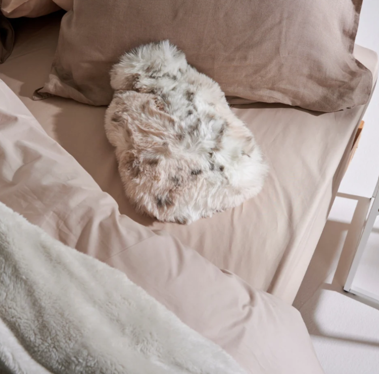 Morbida e confortevole, la borsa dell'acqua calda in pelliccia sintetica con stampa leopardata beige ti offrirà tutto il comfort di cui hai bisogno per le serate invernali più avvolgenti.
