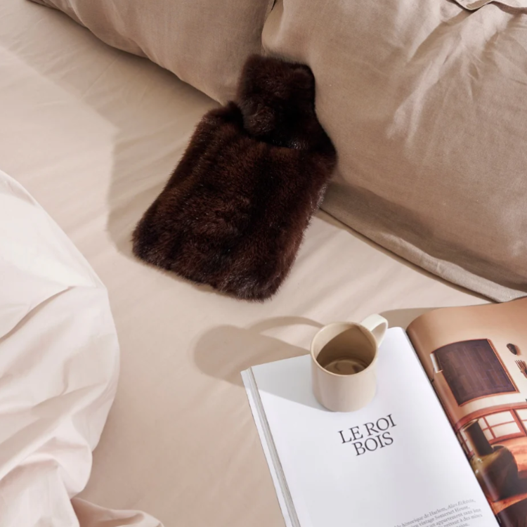 Il comfort assume una nuova dimensione con la borsa dell'acqua calda Cocon Waro. Rivestita da una fodera in pelliccia sintetica marrone scuro, con pelo lungo e un leggero motivo zebrato nero, gioca la carta dell'eleganza sobria. Raffinata quanto piacevole al tatto, si abbina perfettamente al plaid Cocon per un duo irresistibilmente morbido.