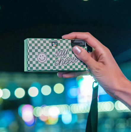 Con questa macchina fotografica analogica con il messaggio "say cheese", non ci sono scuse: anche la persona più seria finirà per sorridere per la tua foto, perché quando inquadri, scatti e dici "cheese", la magia (e le risate) sono garantite. Con le sue 17 esposizioni in bianco e nero, ogni scatto di questa macchina fotografica a pellicola avrà un affascinante tocco vintage. E se la luce non è delle migliori, il flash integrato salverà la giornata, scattando foto spettacolari anche di notte. Basta mettere a fuoco, scattare... e lasciare che la macchina fotografica analogica faccia il resto! Questa macchina fotografica usa e getta è pronta per accompagnarti ovunque: a un festival, a visitare una nuova città o persino sul tavolo delle nozze, così tutti potranno catturare ricordi unici. È dotata anche di un gancio, così la avrai sempre a portata di mano per quei momenti che meritano di essere immortalati.