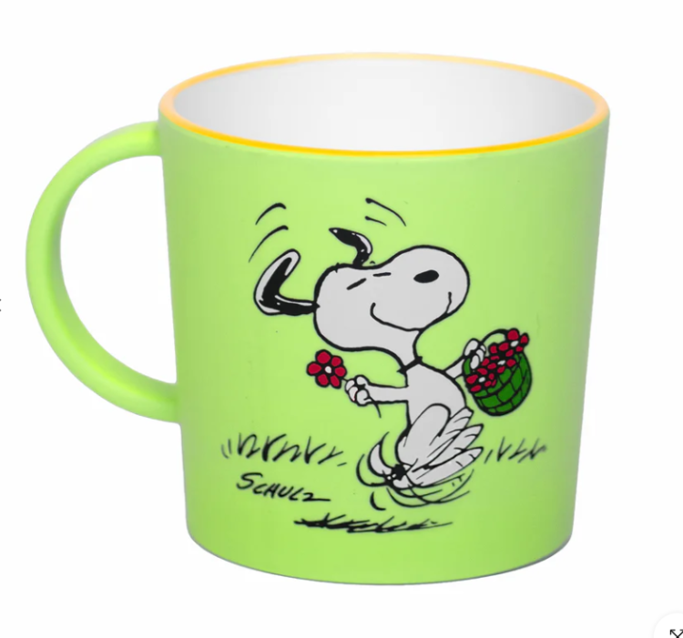 Mug sostenibile da 400 ml in plastica riciclata (R-PET) con licenza ufficiale Peanuts®, con grafica su entrambi i lati. Leggera, resistente, lavabile in lavastoviglie e adatta al microonde. Disponibile in diversi design colorati e divertenti, perfetta per collezionisti e amanti del mondo Snoopy.