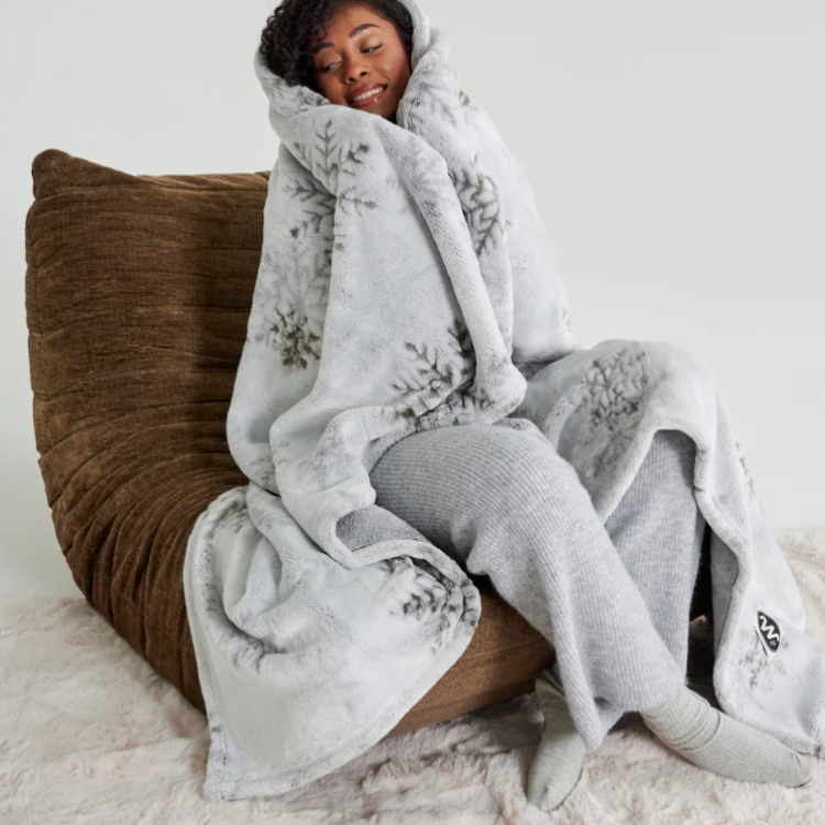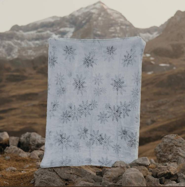 Il plaid grigio Snowflakes vi trasporta nel cuore dell'inverno, con il suo motivo a fiocchi di neve che evoca le prime nevicate sulle montagne.