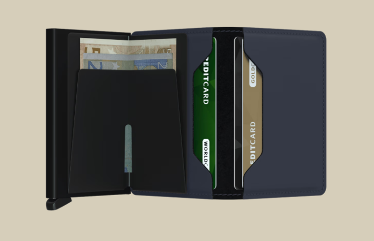 La Slimwallet è una rivisitazione moderna della classica billfold. Il suo profilo extra-sottile, senza bottone o sistema di chiusura a calamita, si adatta perfettamente a tutte le tasche. La pelle dal taglio generoso contiene almeno sei carte, banconote e biglietti da visita aggiuntivi.